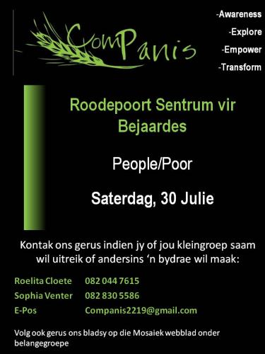 Die Gr 7's word tydens altwee oggend dienste in die teatro afgesonder. Vir meer inligting kontak gerus vir Joharina Nel by (011) 268 4760 of e-pos joharinan@mosaiek.com Start: 24/07/2011 17:45